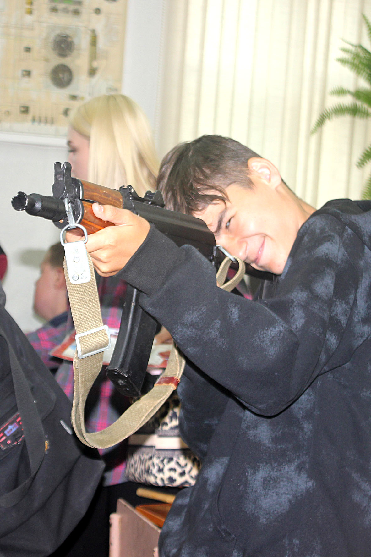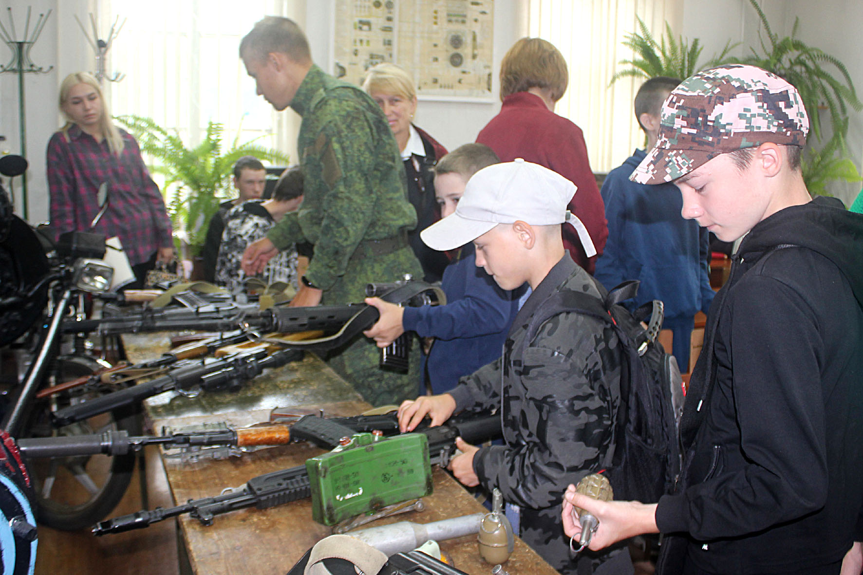 Такие встречи во время школьных каникул стали уже традиционными, но интерес у учеников к интерактивной выставке оружия (многие уже знакомились с экспонатами) не иссяк. Экскурсию для ребят провел инструктор ВПК «Ельчане» Семён Макаров. Он в доступной форме поведал ученикам об отечественном вооружении, на все вопросы школьников ответил. А когда пришло время для фотографий, особенно оживились мальчишки, ведь все образцы можно было рассматривать, взяв в руки.