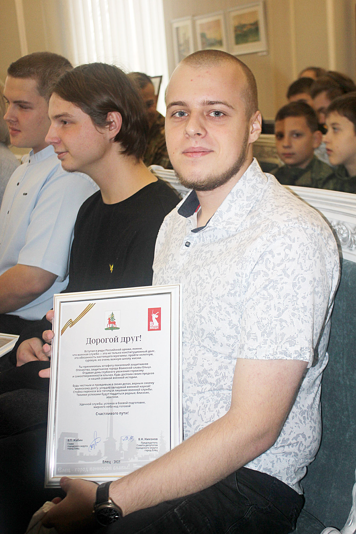 С приветственными словами к собравшимся обратились глава городского округа город Елец Вячеслав Жабин, председатель Совета депутатов городского округа город Елец Виктор Никонов, благочинный храмов Ельца протоиерей Владимир Федюшин.Тем, кому предстоит служба в армии, были вручены повестки и напутственные письма главы городского округа город Елец и Совета депутатов городского округа город Елец, а также памятные подарки. Участниками мероприятия стали и члены военно-патриотического клуба «Ельчане» под руководством Михаила Кобзева.