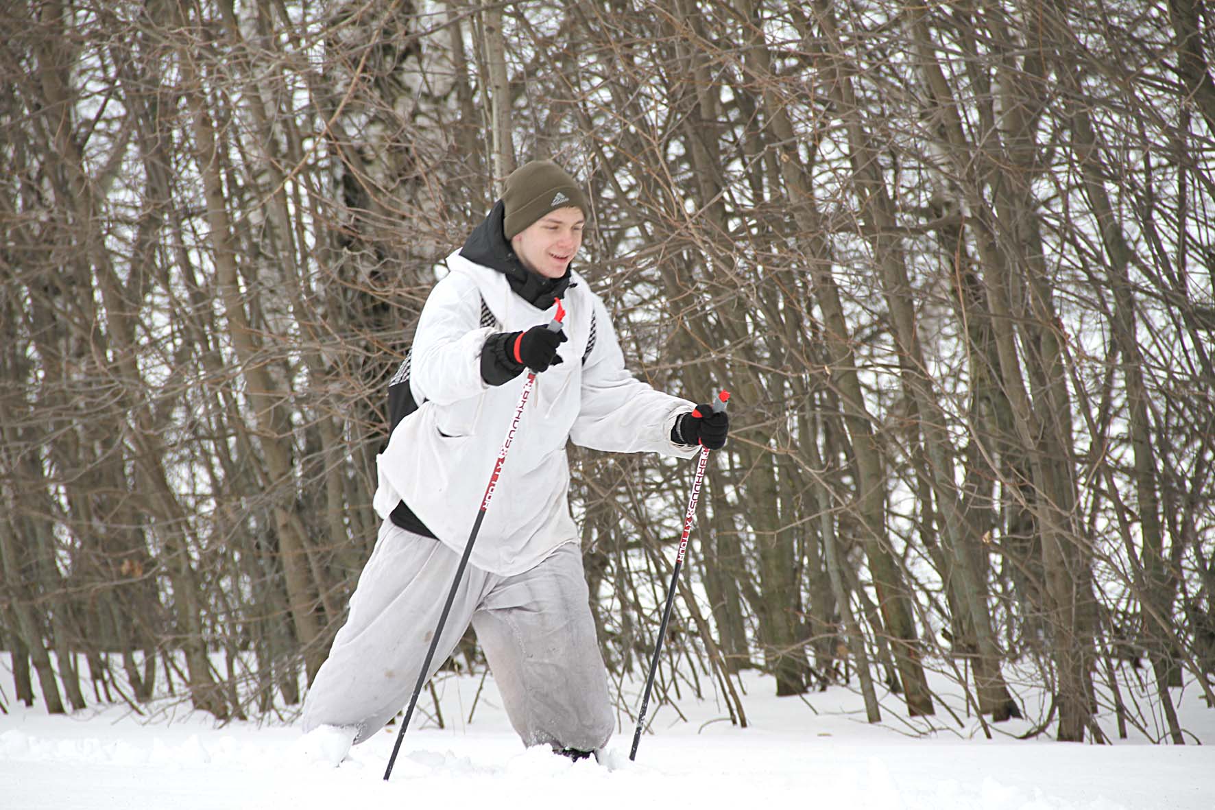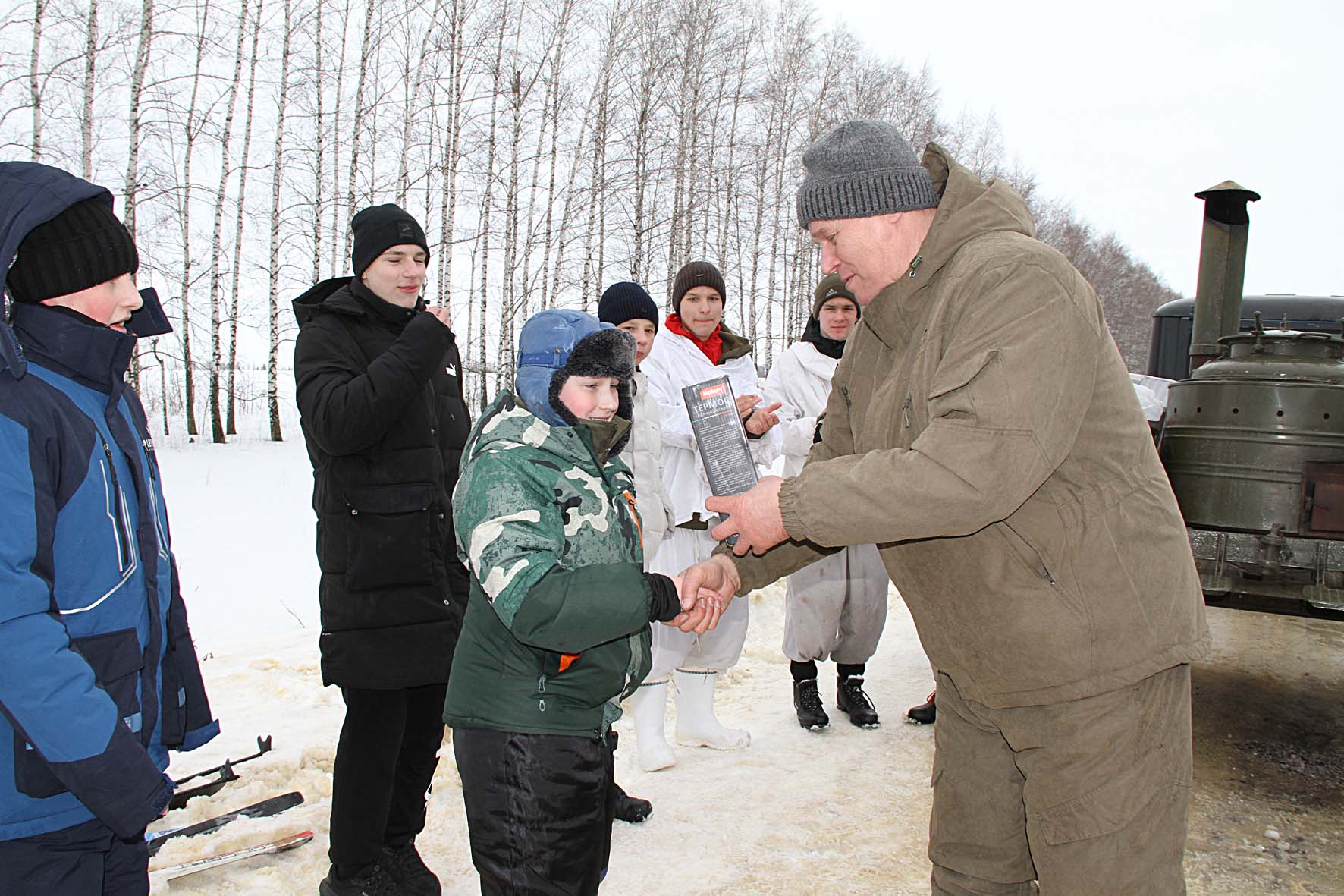 В переход отправились члены ВПК «Ельчане» (Семён Макаров, Павел Кислых), «Оборона Наследия» ( Александр Попов, Егор Кирдябкин, Матвей Фокин, Иван Позднышев, Краснинский район), учащиеся МБОУ «Лицей № 5 города Ельца» (Егор Родионов, Евгения Щепотьева, Ульяна Полякова), студент ЕТЖТ — филиала РГУПС (Иван Рогатых), старшеклассник школы п. Солидарность Дмитрий Иванов. Идти им было не просто, снег местами проваливался даже под лыжами. Но они прошли. К самому юному участнику Ване Позднышеву (ему 9 лет) теперь решили обращаться не иначе, как Иван Сергеевич, ведь он с дистанции не свернул.