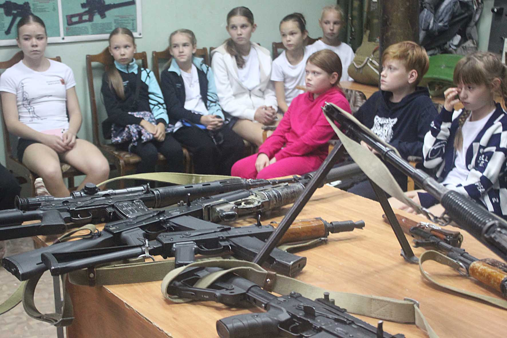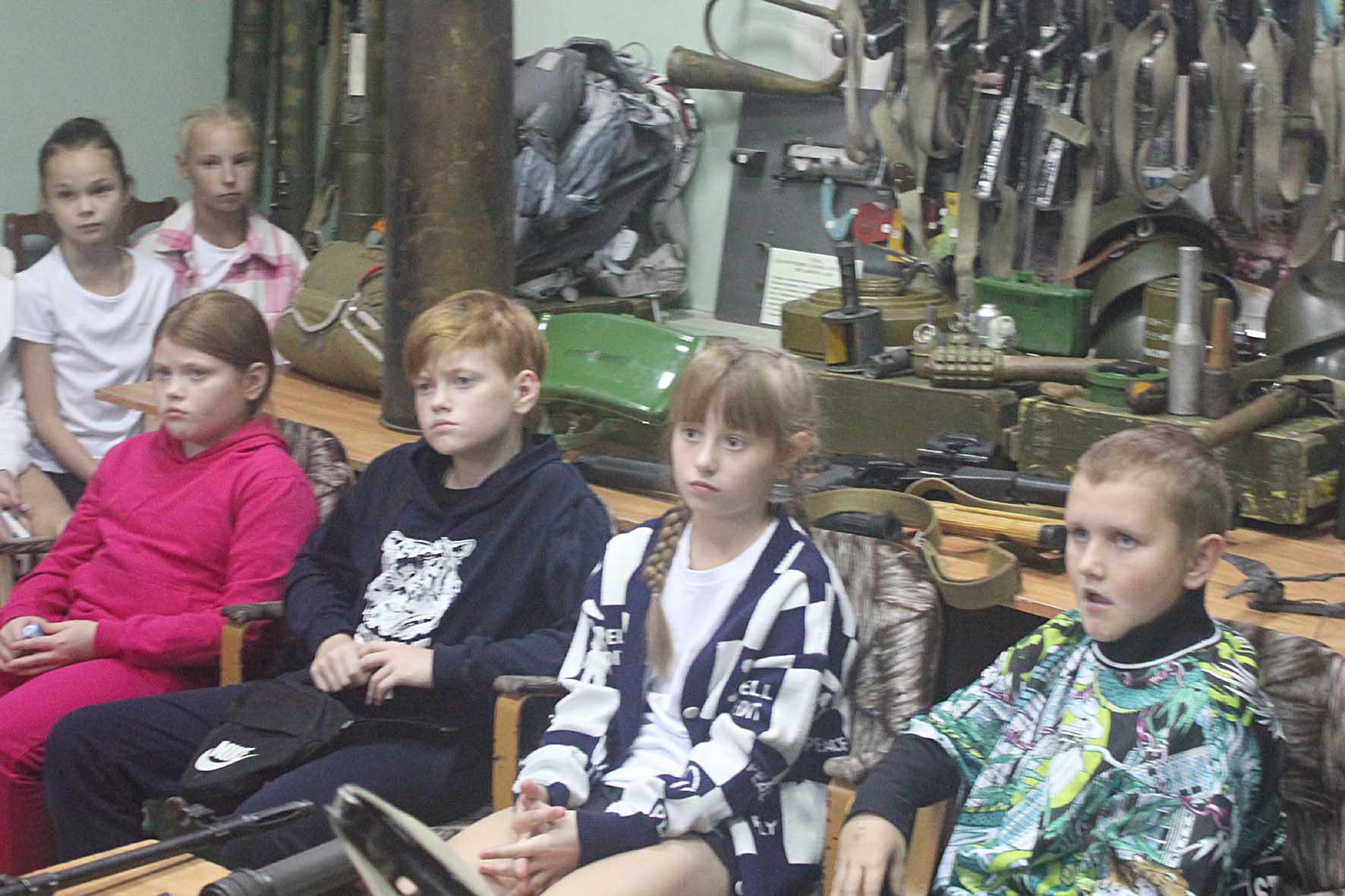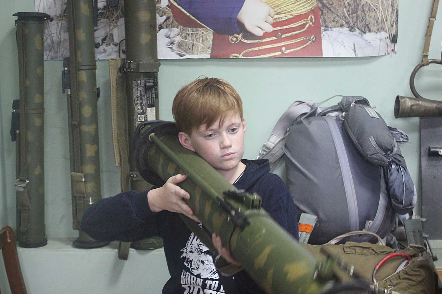 Здесь для мальчишек и девчонок была открыта интерактивная выставка (организована в рамках проекта «Ратник»). Парни из ВПК «Ельчане» Семён Макаров и Сергей Воробьев познакомили ребят с макетами стрелкового оружия, экипировкой защитников Родины.