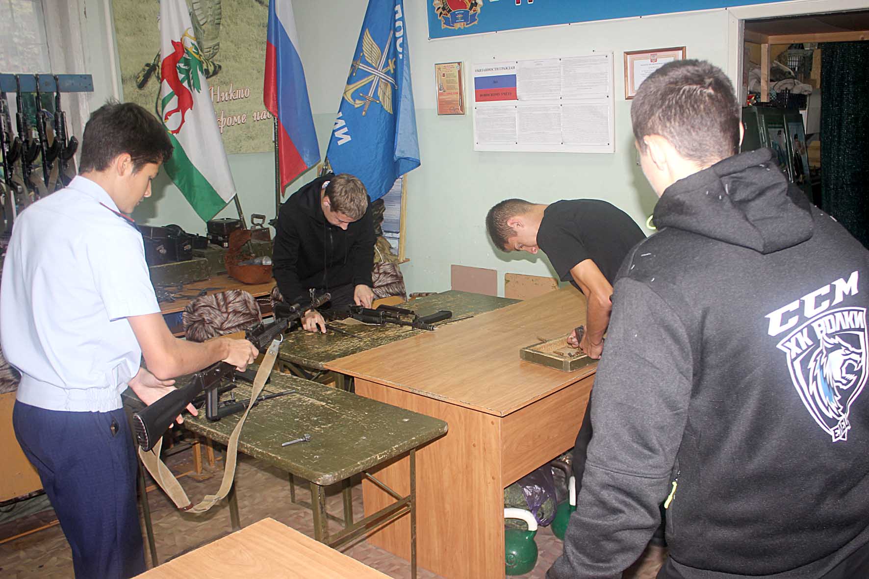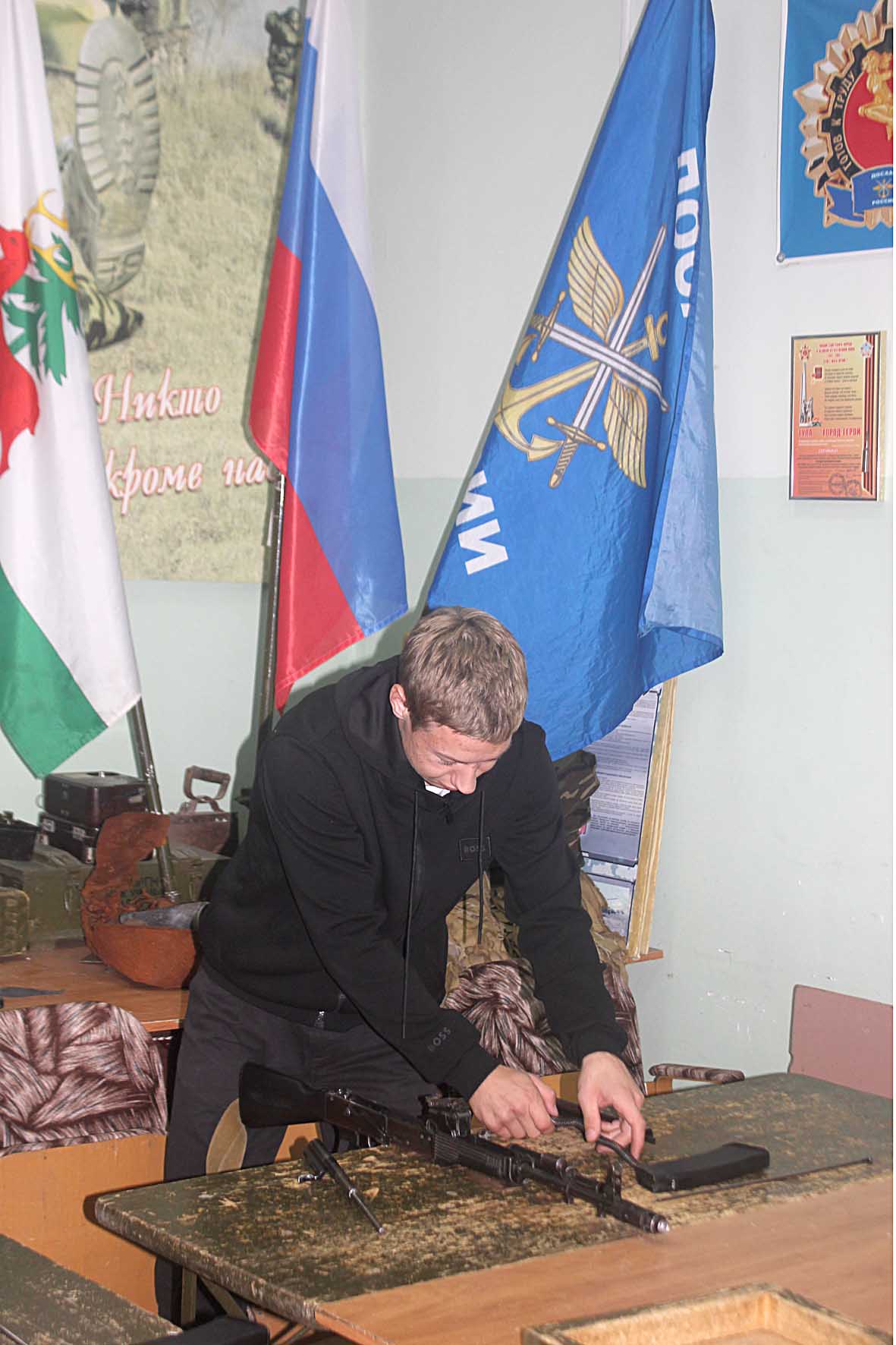 Потому школьники из Ельца в эти дни активно готовятся к соревнованиям. Сегодня в местном отделении ДОСААФ были занятия по тактической медицине, разборке и сборке АК-74, снаряжению магазина, стрельбе из пневматической винтовки.